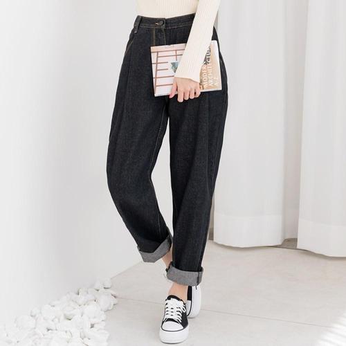 HSSG WJ2-1D 여자핀턱오버핏배기청바지_블랙