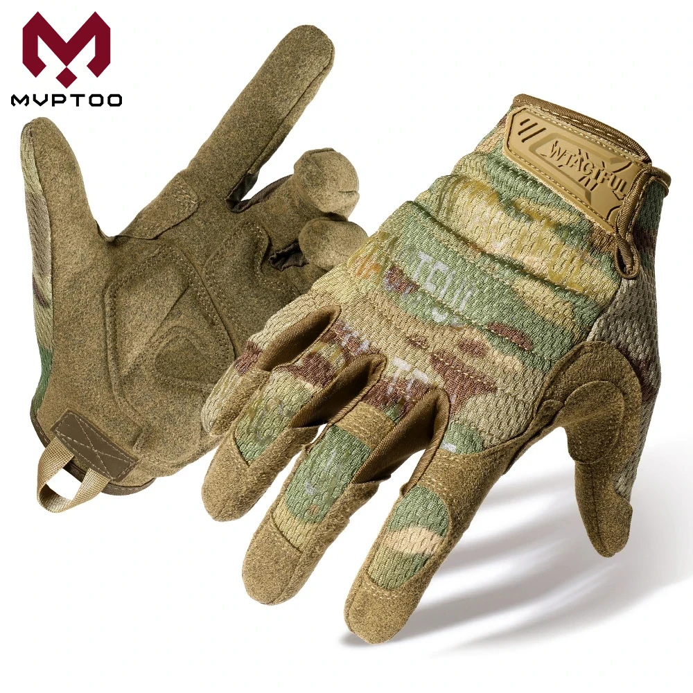 터치 스크린 전술 장갑 위장 페인트 볼 슈팅 Airsoft 전투 사냥 충격 방지 전체 손가락 장갑 자전거 남자 여자