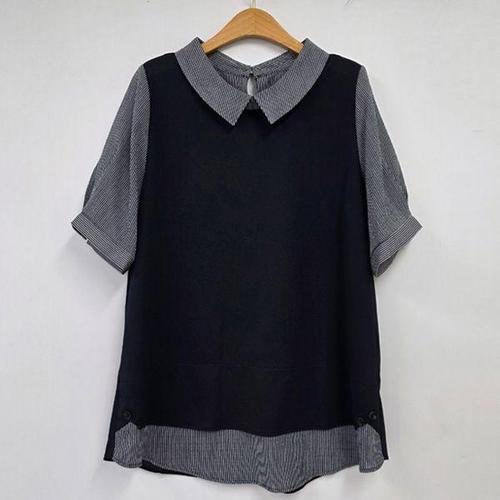 [아이우먼]잇츠배색카라넥블라우스 DDU060M603 빅사이즈