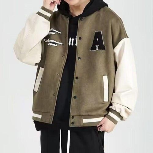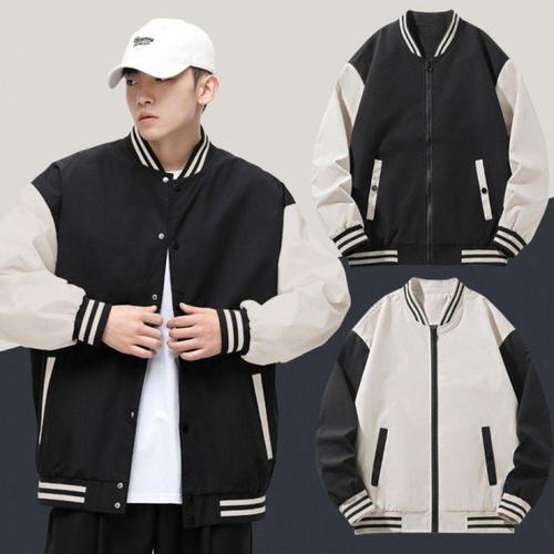 오리지날 레트로 스냅단추 야구점퍼 남녀공용 오버핏 야구잠바 심플한 컬러 배색 아우터