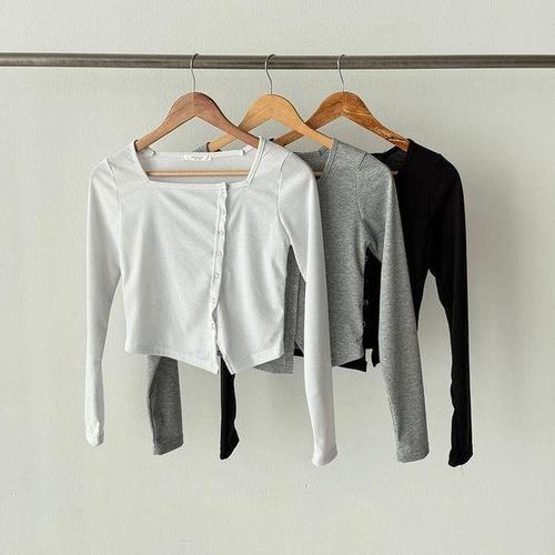 [셀러허브_여성트랜드패션]여성 롱슬리브 SS 언발란스 스퀘어넥 티셔츠