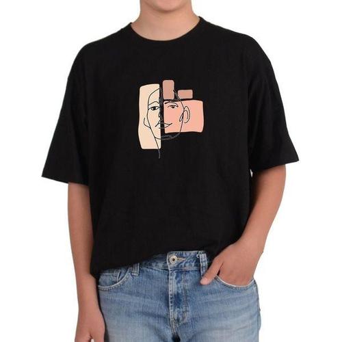 [에이치플러스몰]오버핏반팔티 얼굴 디자인 간단한 선과 색상으로 표정 연출 그림 모든사이즈