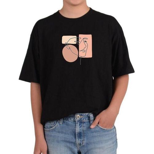 [에이치플러스몰]반팔라운드 얼굴 디자인 간단한 선과 색상으로 표정 연출 그림 모든사이즈