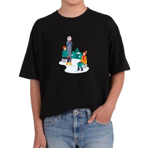 [에이치플러스몰]반팔라운드 겨울낚시 FISHING 얼음낚시 겨울풍경 놀이 그림 모든사이즈