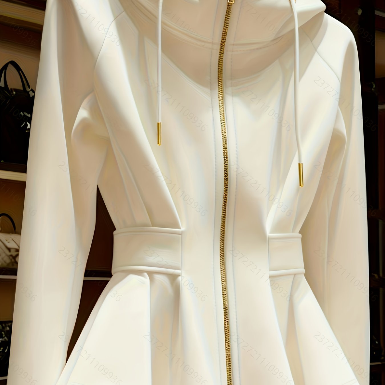 TEMU SQ25033006 여성용 지퍼, 긴소매, 슬림핏, 후드 코트가 있는 우아하고 따뜻한 특별한 재킷