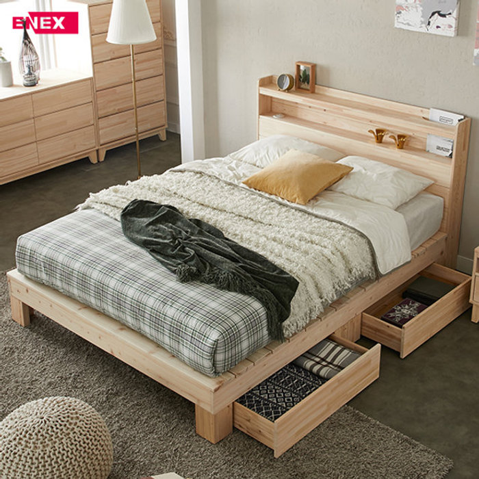 에넥스 오리진 편백나무 LED서랍형침대(Q)-헤드포함