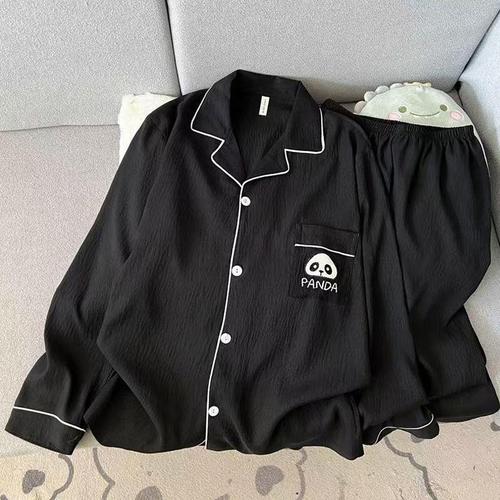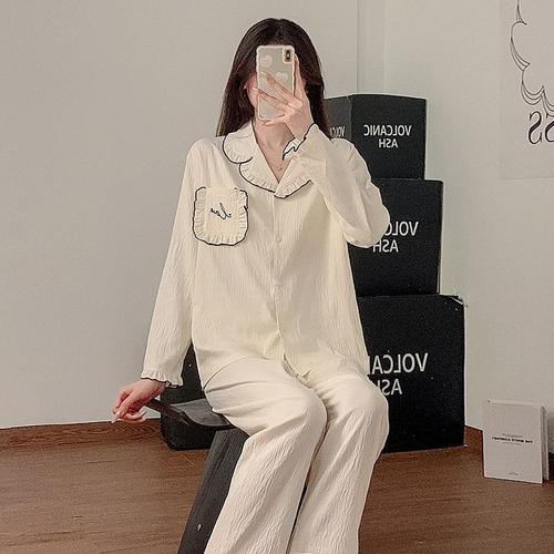 [미라클세븐]여성용 리본 장식 블랙 트리밍 카라 수면 파자마 세트