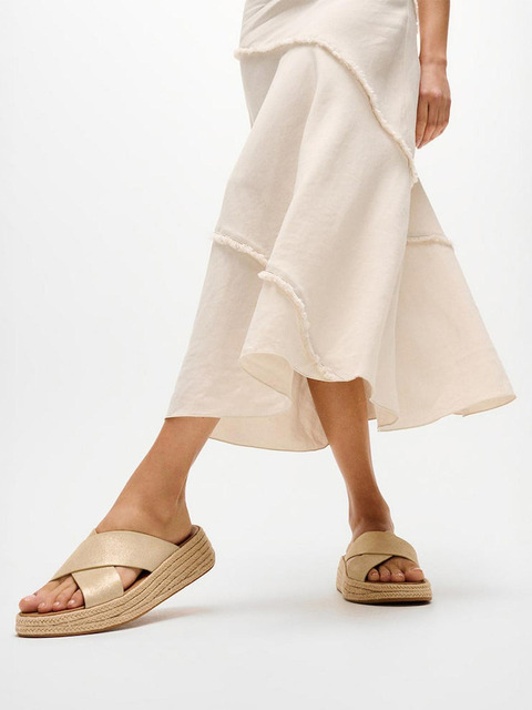 [핏플랍] [삼성물산공식] 여성 F모드 에스파드류 쉬머 스웨이드 크로스 슬라이드플라티노 (FT64K2D279)