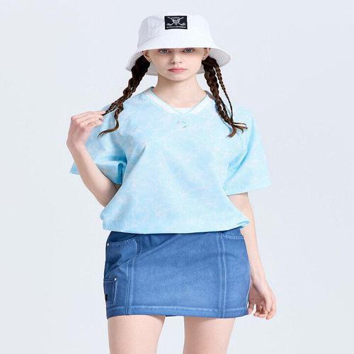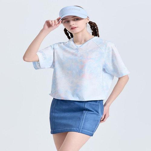 [챌린저]여성 에어패스 윤슬 패턴 브이넥 반팔 우븐탑 스카이블루_CHF2WWT6617SB_IC