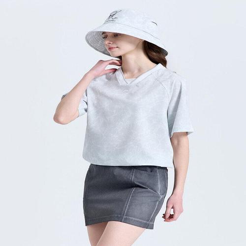 [챌린저]여성 에어패스 윤슬 패턴 브이넥 반팔 우븐탑 라이트그레이_CHF2WWT6617LG_IC