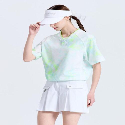 [챌린저]여성 에어패스 윤슬 패턴 브이넥 반팔 우븐탑 네온그린_CHF2WWT6617NG_IC