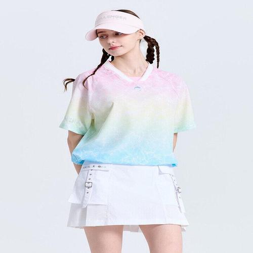 [챌린저]여성 에어패스 윤슬 패턴 브이넥 반팔 우븐탑 핑크_CHF2WWT6617PK_IC