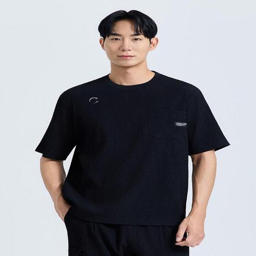 [챌린저]남성 에어패스 윤슬 패턴 라운드 반팔 우븐탑 블랙_CHF2MWT6215BK_IC