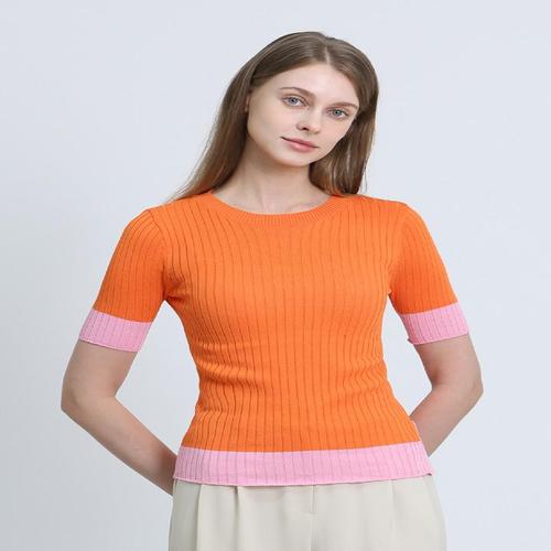 [르샵][르샵(LeShop)] 배색 포인트 옆트임 반팔니트 (택가격 89000원)
