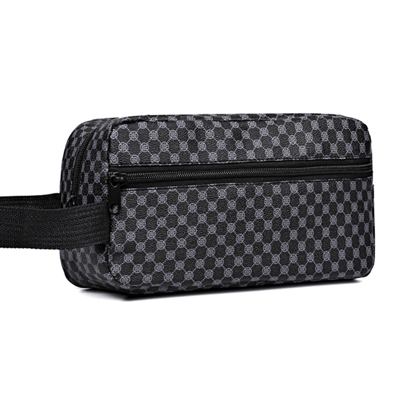TEMU 남성용 클러치 백 - 남녀 모두를 위한 스타일리시하고 사용하기 쉬운 체크무늬 프린트 여행용 파우치, 출장 및 세면도구 및 화장품 보관에 적합. [지퍼 방향은 랜덤으로 결정됩니다.]