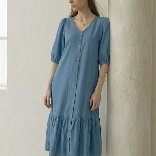 [웬디즈갤러리]퍼프 브이넥 반팔 데님원피스 /편한 여름 데일리 VOP104