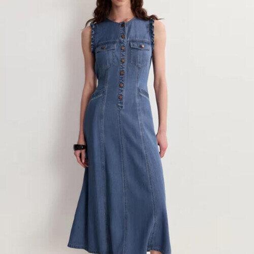 [바바라옷장]268900 - 데님 롱원피스 청원피스 하객룩 데님원피스 플레어원피스 여름원피스 오피스룩