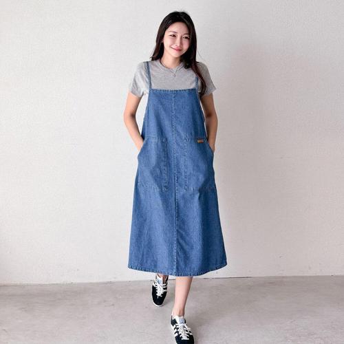 여성 여름 쓰리포켓 루즈핏 데님 멜빵 청 원피스 치마