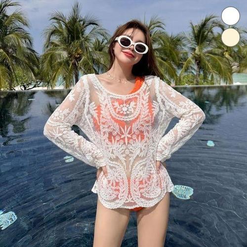[신상오픈런]여성 여름 휴가 시스루 자수 커버 블라우스