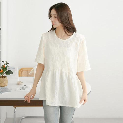 [옷자락] 여자 파스텔 시어서커 여름 반팔 프릴 롱 블라우스