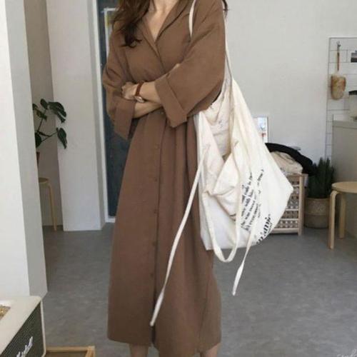 [옷자락]여자 여름 시원한 코튼 스트라이프 롱 셔츠 원피스