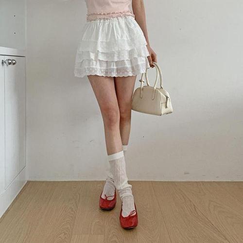 [옷자락] 여자 봄여름 코튼 레이스 캉캉 미니스커트