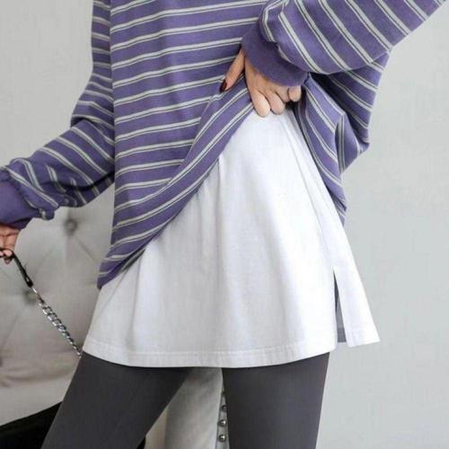 여성용 신축 허리밴딩 면 레이어드 미디 스커트 화이트 블랙 여름 WFLLN9W