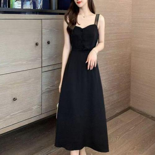 [셀럽하우스]여름 DQFS2712 쓰리 끈나시 블랙 롱 원피스 캐주얼 여자 치마