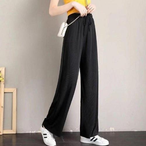 여성용 와이드 밴딩 골지 냉감 여름 쿨링 고무줄 슬랙스 팬츠 WFLLQ3F