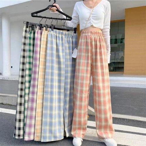 여성 여름 와이드 체크 팬츠 시원한 쿨 슬랙스 바지 WFLLN9V
