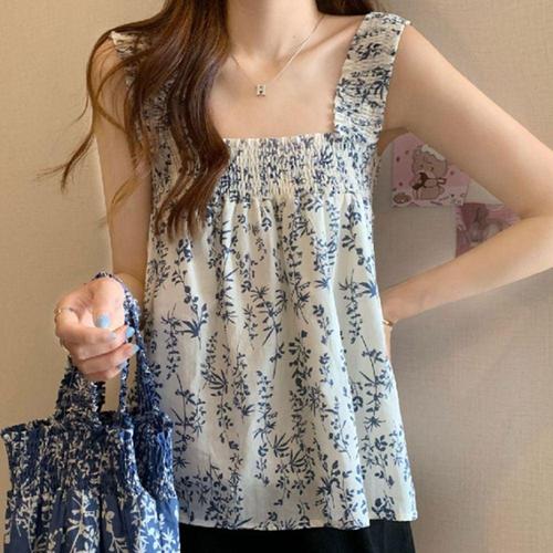 플라워 여름 플레어 나시티 민소매 블라우스 WFMRL83