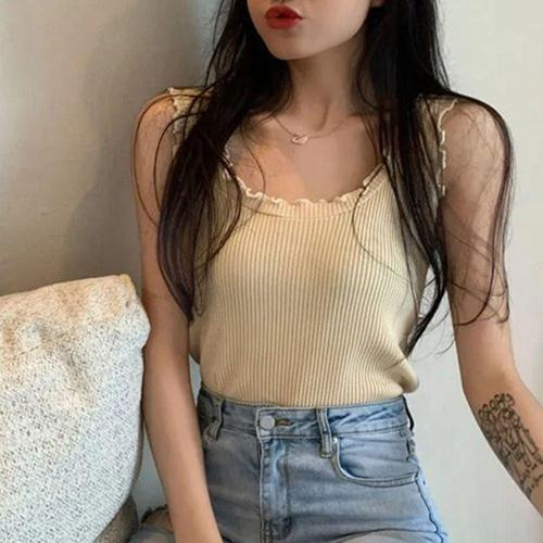 여성용 스판 골지 슬리브리스 나시티 여름용 레이어드 이너웨어 WFLNE26
