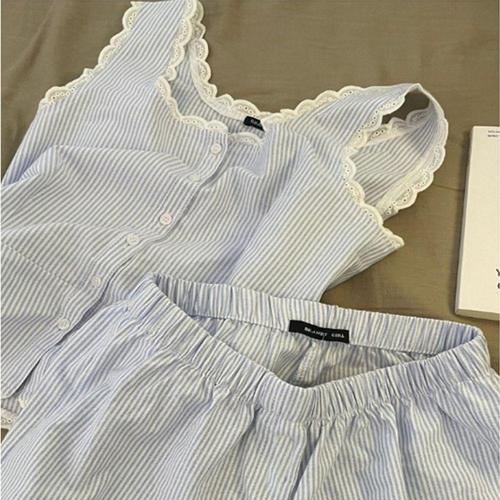 레이스 나시티 여름 숏팬츠 반바지 여성 투피스 잠옷 세트 WFMRL3N