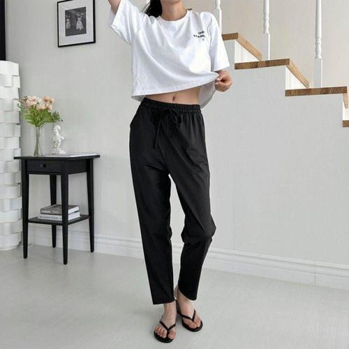 여성용 여름 쿨 와이드 밴딩 팬츠 통바지 편안한 일상복 WFLLP4W