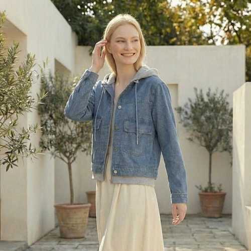 단정/여름신상/하객룩/출근룩 데니 후드 레이어드 자켓