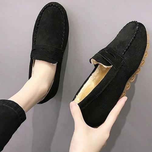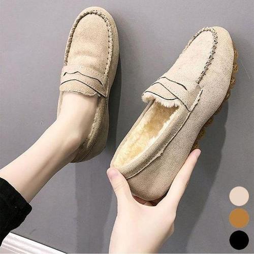 [라일리] Rly 여성 스웨이드 기모로퍼 스티치 겨울 플랫 단화