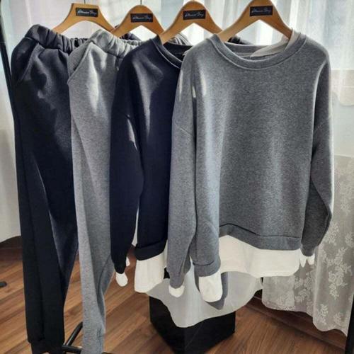 여성 캐주얼 기모 맨투맨 +조거 팬츠 투피스 루즈핏 가을겨울 트레이닝복 세트