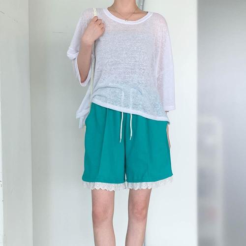 [옷자락]여자 라운드넥 가오리 린넨 박스 반팔티