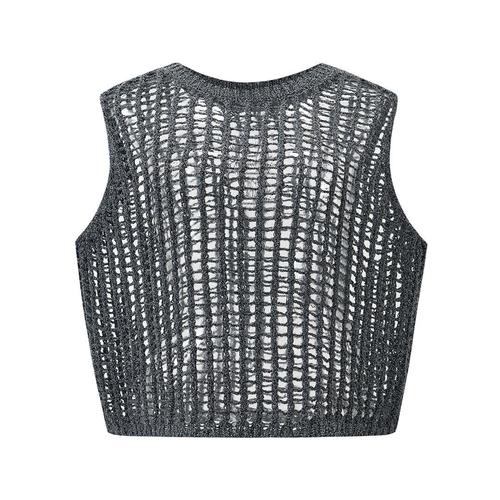 그물 오픈 니트 조끼 세미 루즈핏 망사 베스트 간절기 봄 여름 가을 데일리 조끼