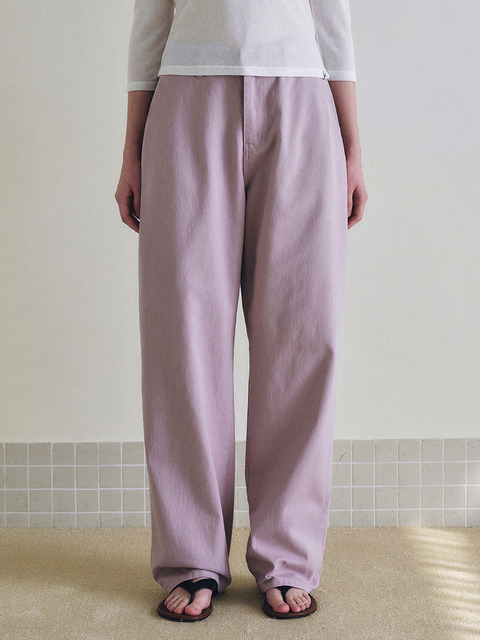 [로에일] 컬러 와이드 코튼 팬츠 - 핑크