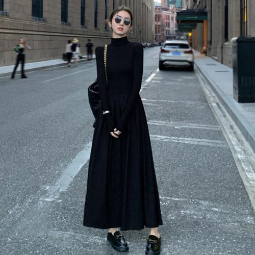 [옷자락] [시즌오프]하이웨스트 스타일 반목 긴팔 심플 롱원피스_5