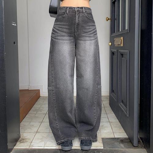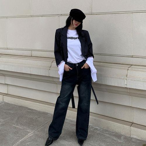 [다잇템]여자 워싱 H라인 넓은 미니멀리즘 블랙진 팬츠