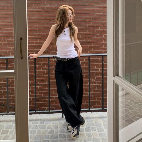 [다잇템]여성 일상 넓은 캐쥬얼 블랙진