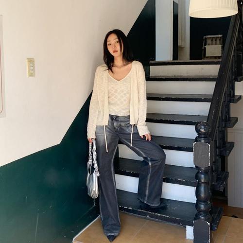 쿨 블랙부츠컷 여름 하우룩 밴딩 쿨 데님 부츠컷 플레어진