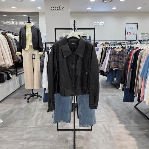 [ab.f.z]AFA5HL09/봄 카라 레더 뒷 셔링 숏 점퍼-IC