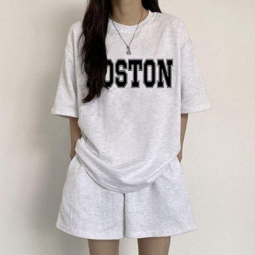 여성 여름 반팔 반바지 캐주얼 스포츠 외출복 트레이닝웨어 WFLLQR4