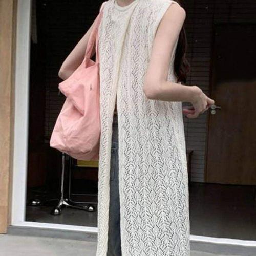 펀칭 롱 니트 슬리브리스 여성용 여름 티셔츠 WFLLN2P