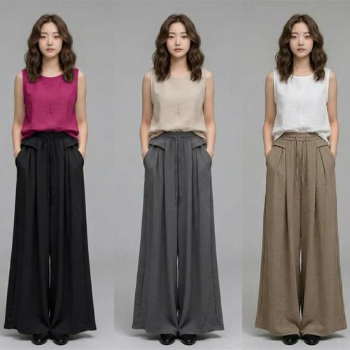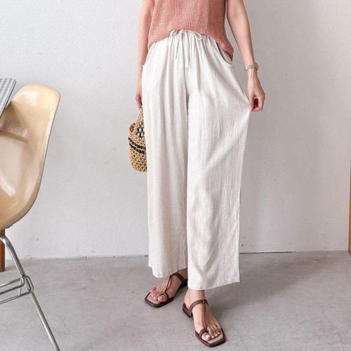 [다잇템]여자 쿨링 린넨라이크 고무줄 와이드팬츠
