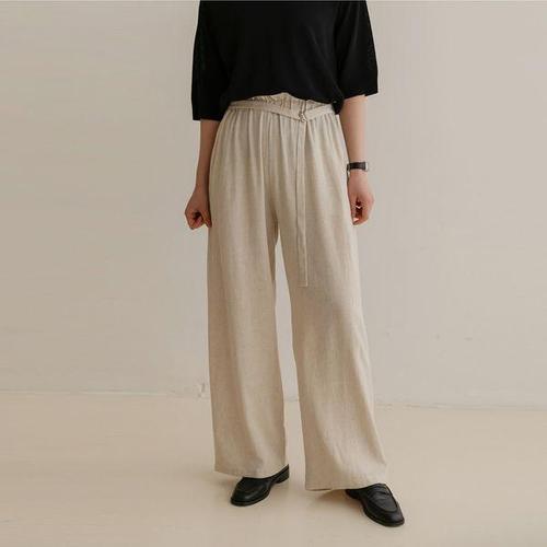 [옷자락]여자 내추럴 린넨 와이드핏 스트링 밴딩 팬츠