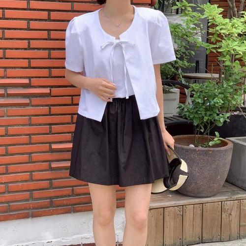 [다잇템]여자 마원단 벌룬소매 끈 반소매 자켓세트